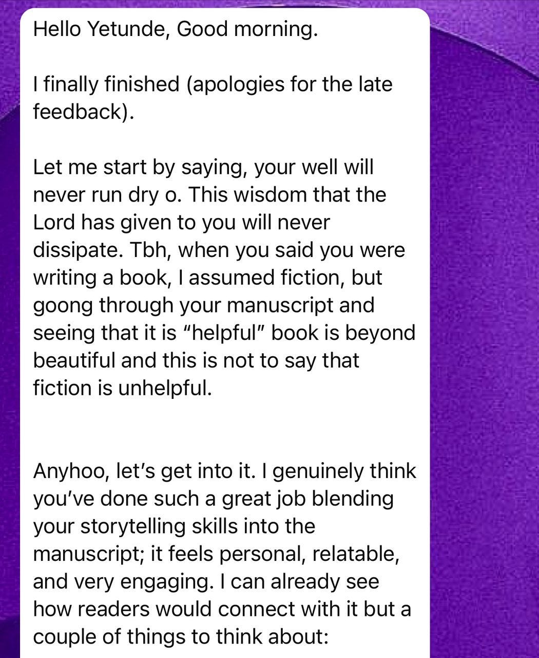 Here’s what one of my proofreaders said after going through the manuscript: